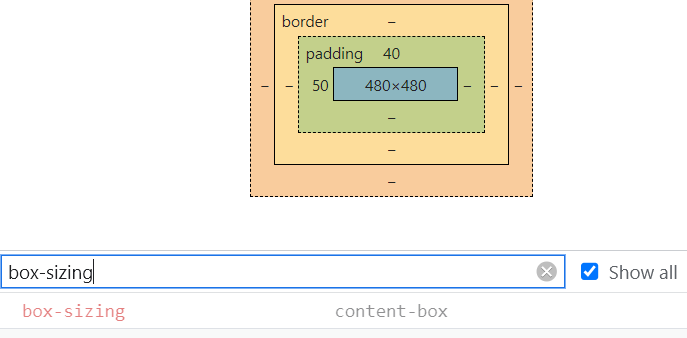 | content-box | 기본 CSS 박스 크기 결정법을 사용합니다. 요소의 너비를 100 픽셀로 설정하면 콘텐츠 영역이 100 픽셀 너비를 가지고, 테두리와 안쪽 여백은 이에 더해집니다. |