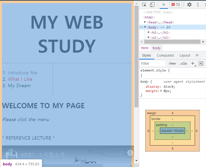 <body>에도 margin값이 설정되어 있기 때문임을 알 수 있다.