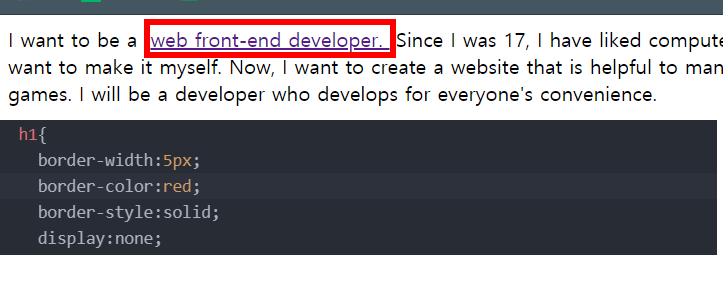I want to be a <a href="https://mywebproject.tistory.com/"> web front-end developer. </a>
