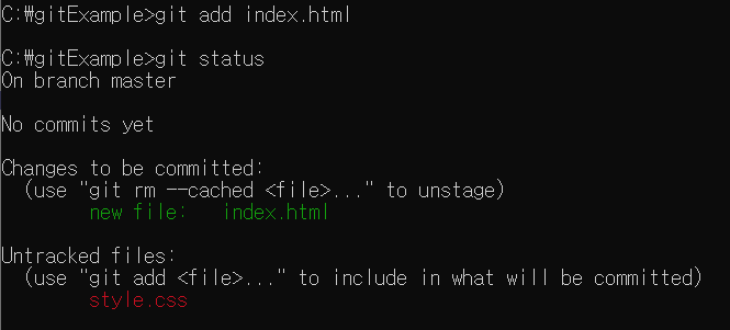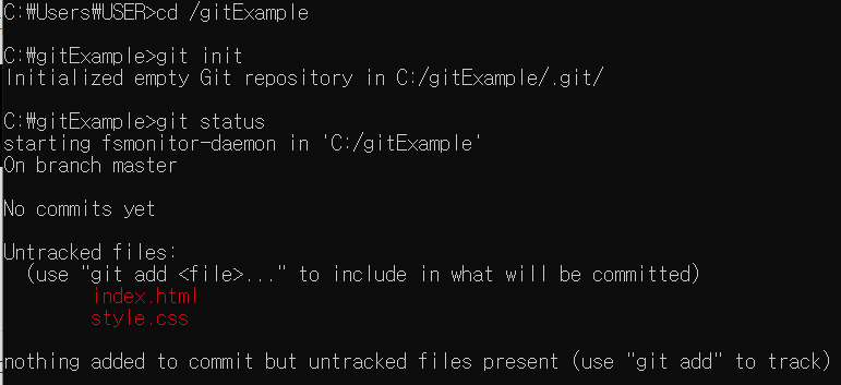 - index.html과 style.css 모두 Untracked File 이라고 뜬다!