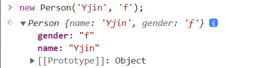 new Person('Yjin', 'f'); // Person {name: 'Yjin', gender: 'f', __proto__: object}