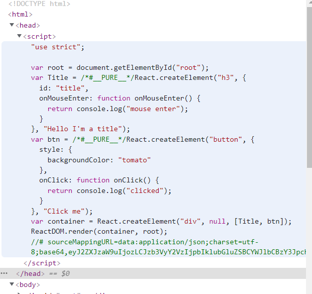 >> babel이 createElement로 바꿔주는 것. (head>script에 저장함)