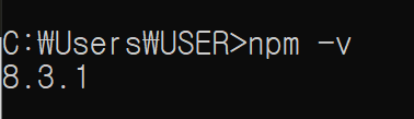 Node.js를 설치하면 자동으로 npm이 설치됩니다. npm도 npm -v로 버전을 체크해봅시다.