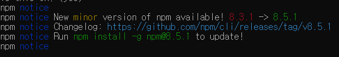 최신버전으로 업데이트 > npm update -g npm