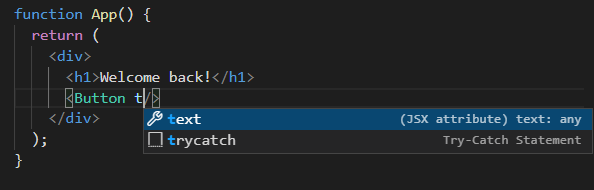 <Button text="continue"/>