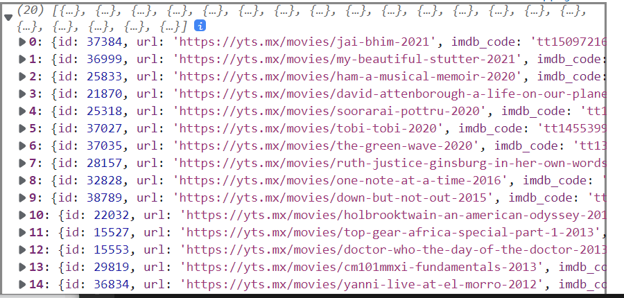 1. 맨처음 >> setMovies(json.data.movies) 할때