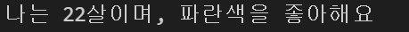 print(f"나는 {age}살이며, {color}색을 좋아해요")
