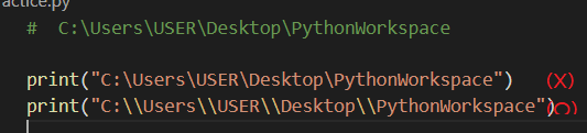 3. 역슬러시(\\) 두개 입력시 = 문장 내에서 \