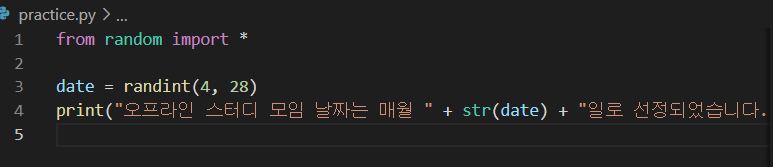 date3 = (randrange(1, 26) + 3) # 4 ~ 28일