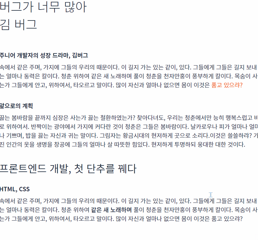 <h3 class="fs-base text-dark">주니어 개발자의 성장 드라마, 김버그</h3>