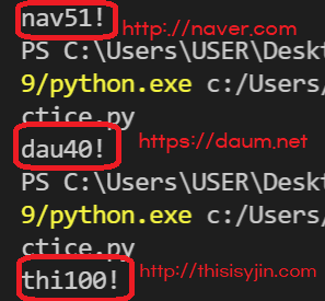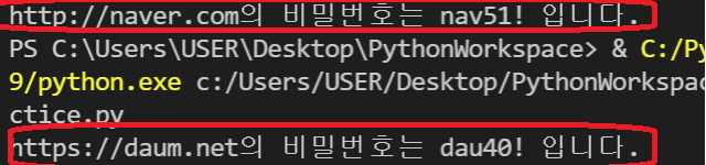 print("{0}의 비밀번호는 {1}입니다.".format(url, password))