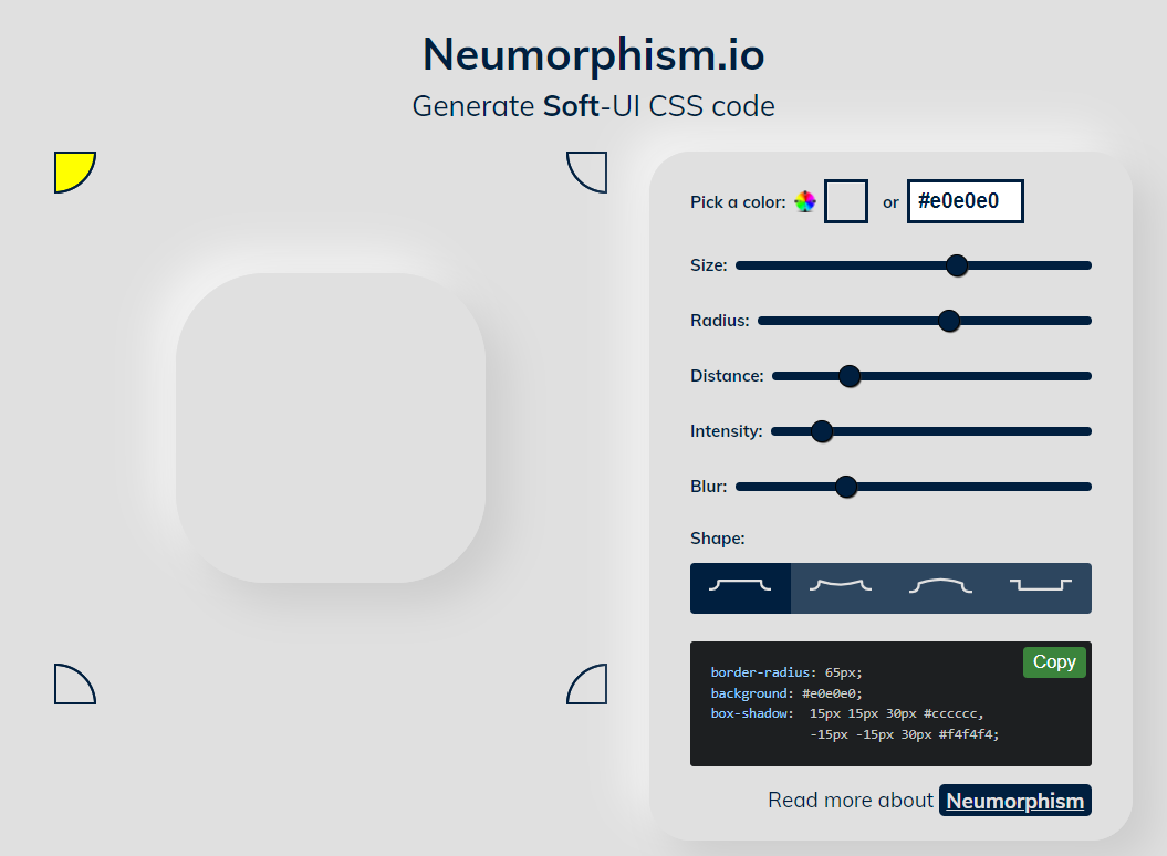 CSS code generator that will help with colors, gradients and shadows to adapt this new design trend or discover its posibilities.