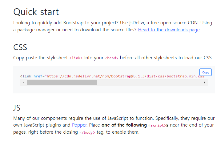 Quick start 누르고 CSS 라 적힌 부분의 코드를 copy한다.
