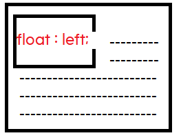 CSS 속성(property) float 은 한 요소(element)가 보통 흐름(normal flow)으로부터 빠져 텍스트 및 인라인(inline) 요소가 그 주위를 감싸는 자기 컨테이너의 좌우측을 따라 배치되어야 함을 지정합니다.