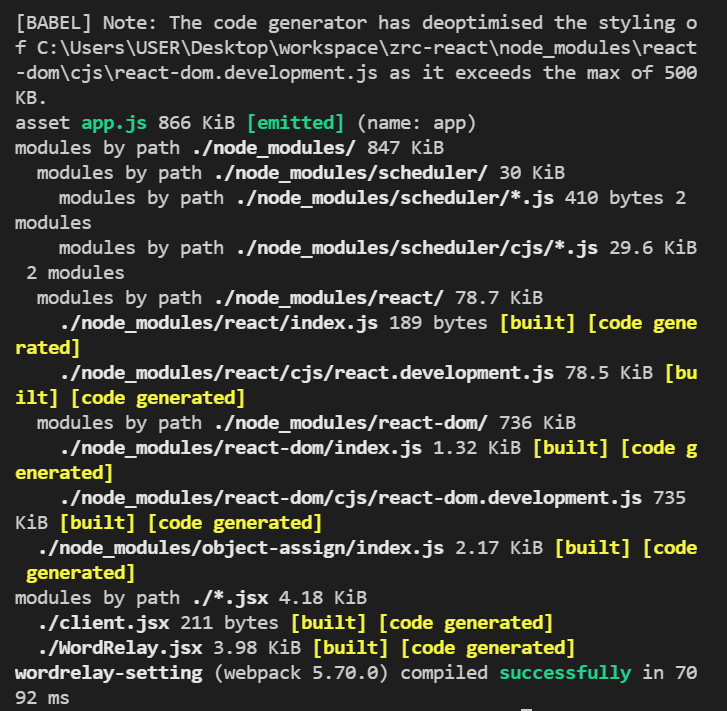 package.json ํ์ธ"devDependencies": { "@babel/core": "^7.17.7", "@babel/plugin-proposal-class-properties": "^7.16.7", "@babel/preset-env": "^7.16.11", "@babel/preset-react": "^7.16.7", "babel-loader": "^8.2.3", // ์๋ต }