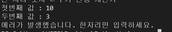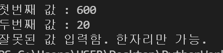 print("에러가 발생했습니다. 한자리만 입력하세요.")
