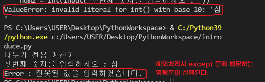 (네임 에러든, value 에러든, zerodivision 에러든간에)