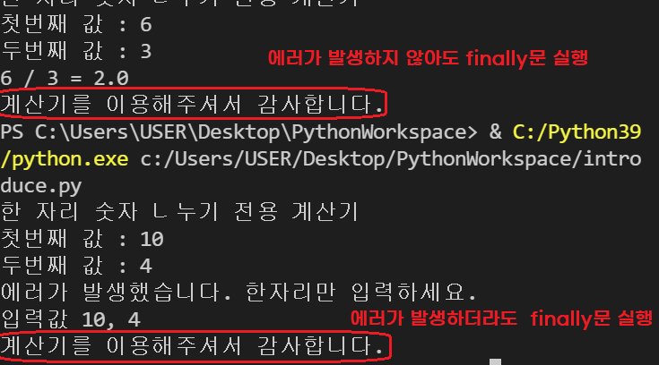 except에 존재하지 않는 ZerodevisionError가 발생하더라도 finally문은 실행이된다!