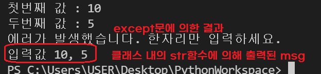 클래스 내에서 str함수에 의해 msg에 해당하는 내용이 출력된다.