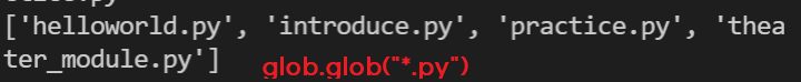 print(glob.glob("*.py")) # 확장자명이 py인 모든 파일 찾기