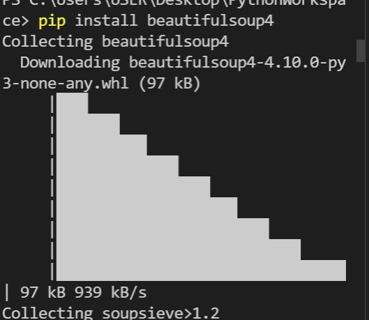 이번 예제에서는 웹 스크래핑에 유용한 beautifulsoup 패키지를 다운받아 보겠다.
