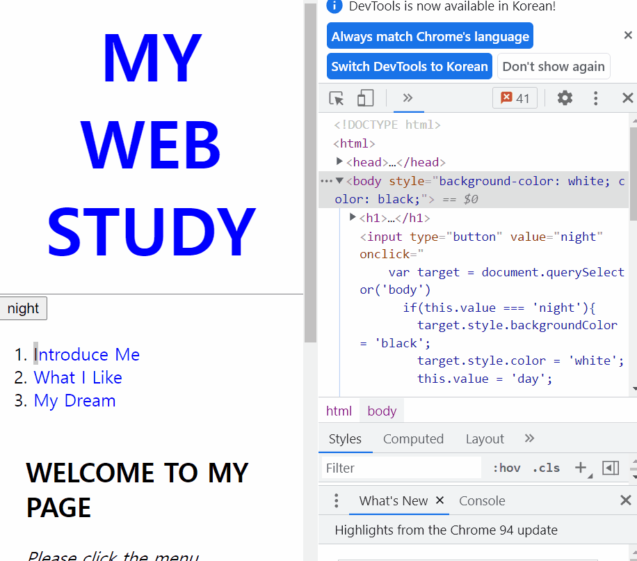 따라서, 변수로 document.querySelector('body')를 설정한 다음