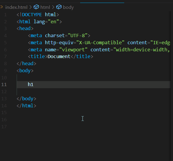 h1+div 와 같이 '+'로 연결한 후에 Tab을 누르기.