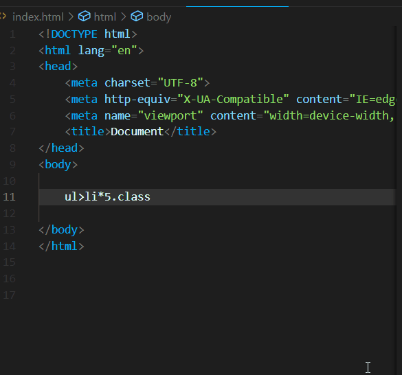 ul>li*5 와 같이 입력하고, Tab 누르기.