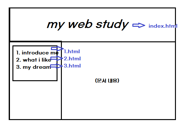각 부분을 클릭하면 해당 문서로 이동하도록 링크를 걸어줌 (<a>태그와 href=""속성 사용)
