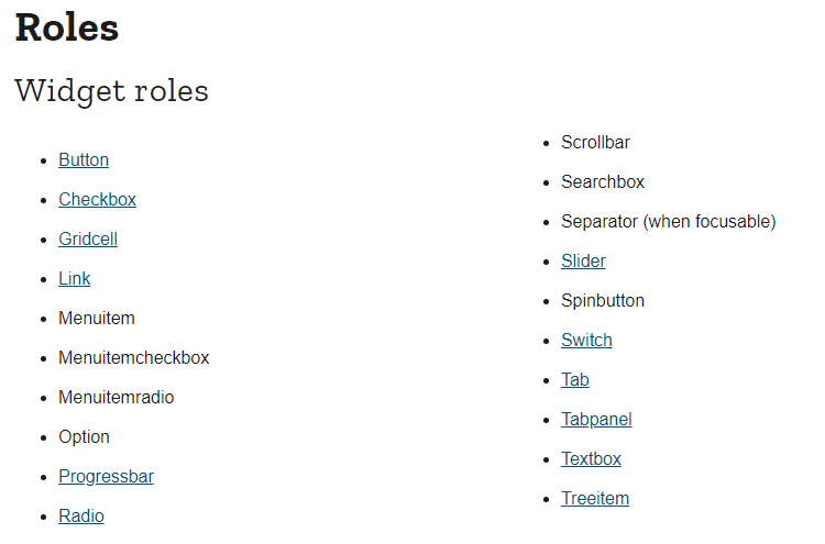 ** role(역할): 특정 요소에 역할정의, 사용자에게 정보제공, 부여한 역할 동적변경 불가